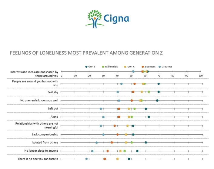 Last year, a global health service company, named Cigna, studied 20,000 Americans and examined their behaviors which could possibly drive loneliness among different groups. The study used frequently referenced UCLA’s Loneliness Scale for the purpose to design their study. The results were quite revealing, if not entirely surprising. Gen Z is lonelier as compared to others and also claim to be in worse health than older generations. Contrary to the popular belief, the study argued that social media is not a predictor of loneliness and among the study respondents, the loneliness score of those who were defined as heavy social media users, was not different from those who rarely or never use social media. Instead, it’s the levels of in-person interaction, wellness - both physical and mental, and the balance in life decisions and choices, which are better predictors of loneliness than social media usage.